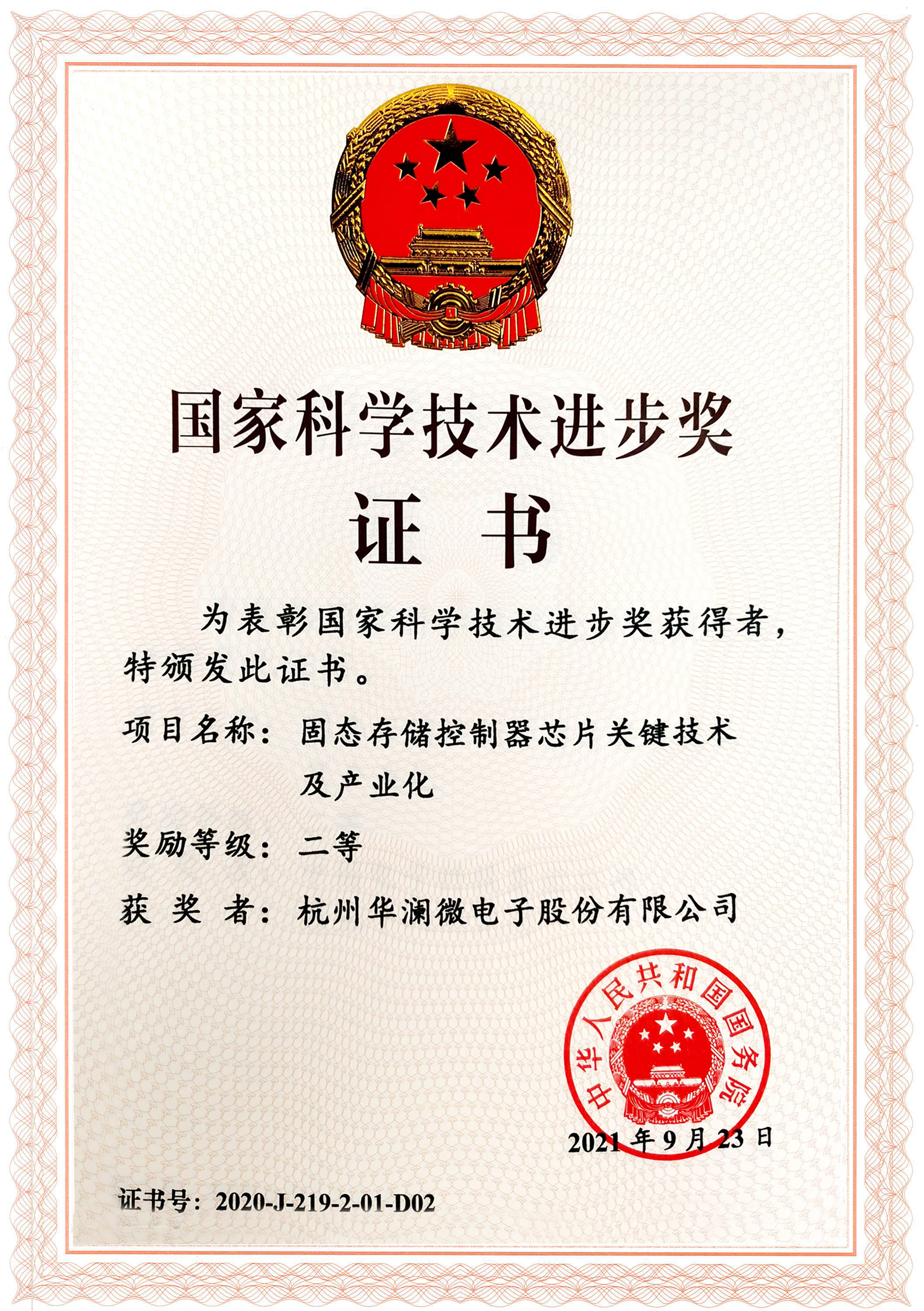 本次技術獎共評選出264個項目、10名科技專家和1個國際組織。其中,國家科學技術進步獎157項:特等獎2項,一等獎18項,二等獎137項。由杭州華瀾微電子股份有限公司領銜完成的“固態存儲控制器芯片關鍵技術及產業化”項目榮獲2020年科學技術進步二等獎(編號:J-219-2-01),本項技術是新一代電腦硬盤、大數據存儲系統的芯片級硬科技,已經得到了國產化推廣應用。